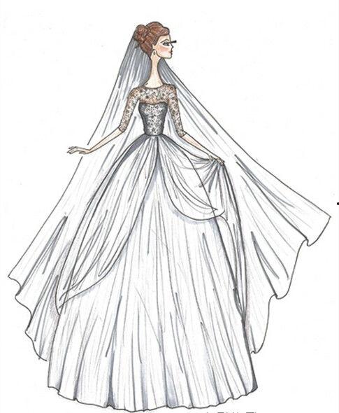婚纱设计手绘图片,可以成为新娘珍藏的回忆,见证她人生中最美好的时刻。